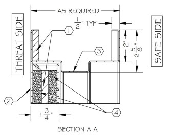 Bullet Resistant Wood Veneered door and hollow metal frame assemblies are designed for “non-ricochet type” intended to permit capture and retention of attacking projectile, lessening the potential of random injury or lateral penetration. The frame is built with cold rolled steel prime painted steel which is cut, then broken, and welded to size. Frames include armor installed in 2″ face to meet ballistic protection level. Our doors have fiberglass armor core with particle board and are veneer including door skins and edge molding. Ballistic level 1 thru 3 are 1 3/4″ thick and ballistic level 4 through 8 are 2″ + thick. Our wood door assembly leaves the factory swinging on its frame using heavy duty clear anodized aluminum continuous gear hinge prepped for cylinder, mortise lockset, or exit device.