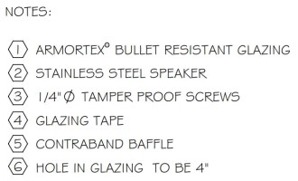 Natural voice Speak Thru provide voice transmission along with security. SSBRS models will fit into 4″ to 6″ diameter hole. 7″ Stainless Steel face plates are secured form the safe side to avoid tampering from the exterior. For ballistic levels 1 thru 3 UL listed laminated polycarbonate offsets face plates, for ballistic level 4 thru 8 prime painted HI-Ballistic steel to provided protection level required. ANVS Models will fit a 5″ diameter hole and is 6″ in diameter cast stainless steel with offset 1/4″ stainless steel for ballistic levels 1 thru 3 and prime painted HI-Hard Steel for levels 4 thru 8 to provide full range of ballistic protection required.